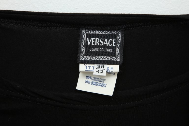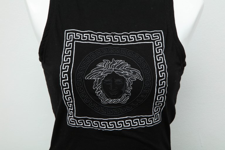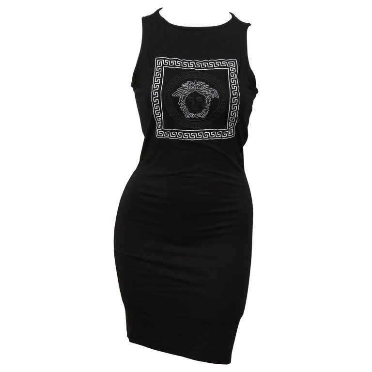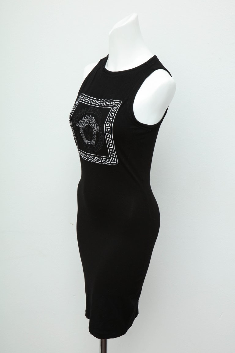 Description: Rare Versace Jeans Couture black dress with iconic Medusa.