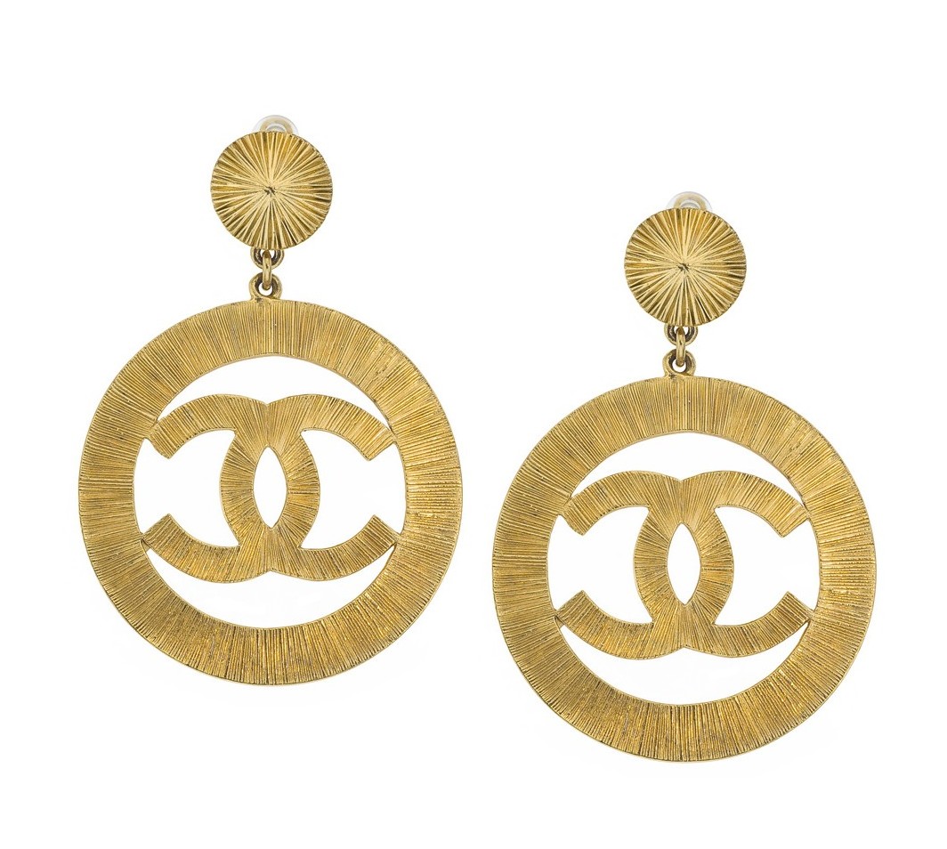 Description: Chanel CC large gold dangling earrings. Signed Chanel 93A Made in France.